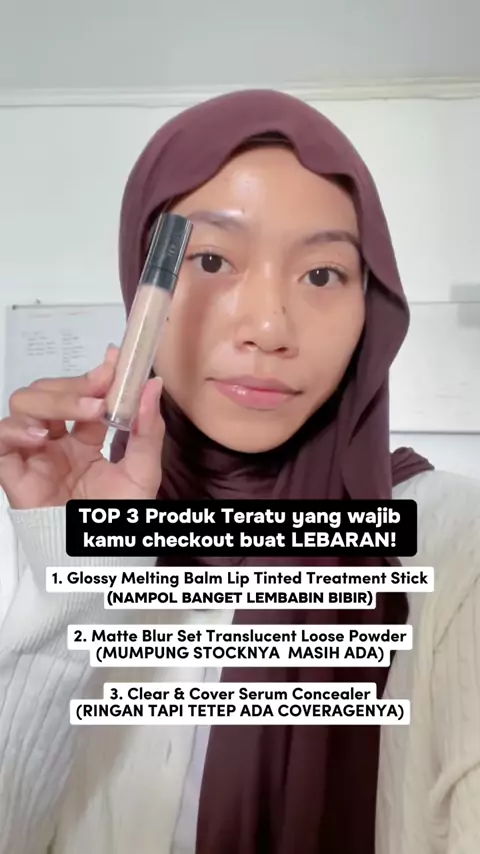 Butuh make up simple tapi awet buat lebaran?!👀✨ Kamu wajib banget checkout 3 Produk Teratu ini: 🖤 Glossy Melting Balm Lip Tinted Treatment 🖤 Matte Blur Set Translucent Loose Powder 🖤 Clear & Cover Serum Concealer ADA YANG UDAH COBA 3 PRODUK INI? Review di kolom komentar dong!😍 #teratubeauty #makeup #lipbalm #loosepowder #concealer