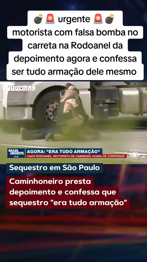 motorista de carreta com falsa bomba confessa para policiais que foi tudo armação dele para chamar atenção de outros motoristas.
