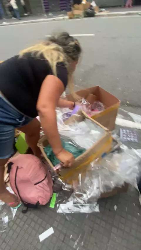 Minha amiga pegando maquiagem do lixo