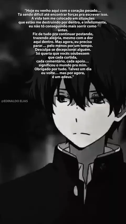 "Nem sempre conseguimos mostrar a dor que carregamos por dentro… Hoje me despeço por um tempo, com o coração machucado e a alma cansada. Agradeço a cada um que esteve comigo até aqui. Vocês foram minha força em muitos dias difíceis. Preciso cuidar de mim agora. Obrigado por tudo."
