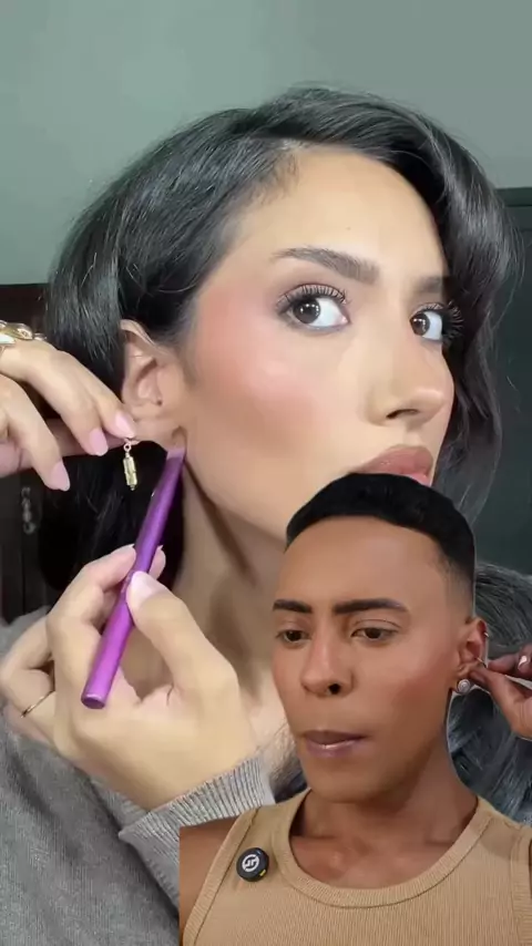 Contorno na orelha pra deixar o rosto mais marcado e alongado. #makeup #truquesdemaquiagem #maquiagem