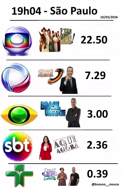 ÊTA MUNDO MELHOR MARCA 20 PONTOS - Ranking de audiência da TV Aberta Segunda-feira 09/03/2026 #audiencia #recordtv #novela #globo #sbt