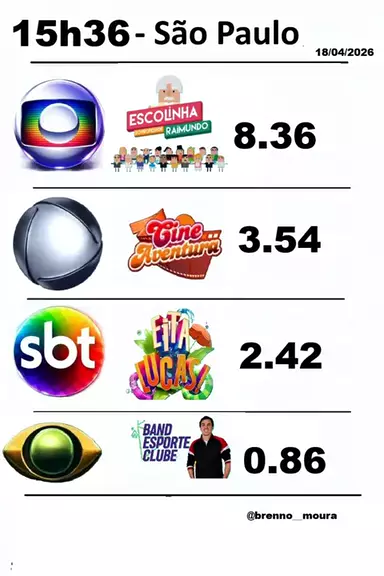 Escolinha do Professor Raimundo liderando, Eita Lucas em 3° #globo #sbt #audiencia #recordtv #band