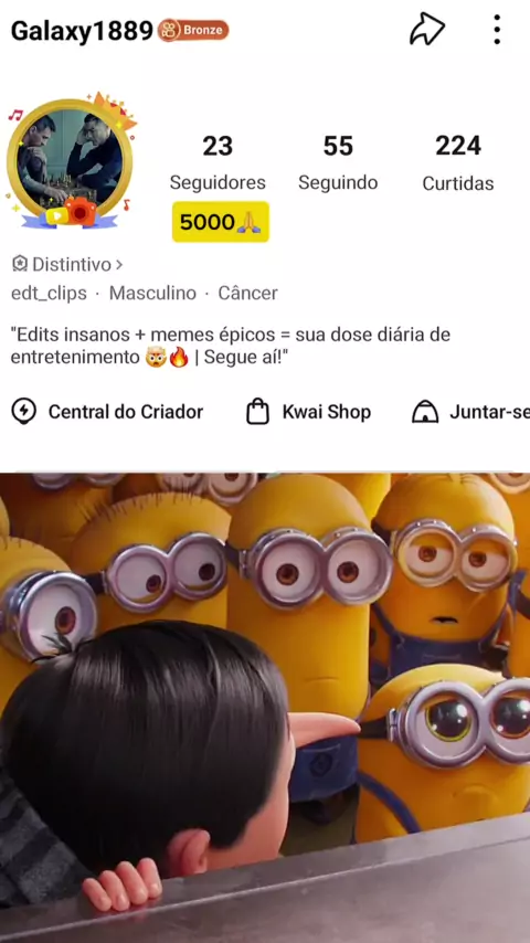 "Edits insanos + memes épicos = sua dose diária de entretenimento 🤯🔥 | Segue aí!" "Compartilha com os amigos e vira fã do conteúdo 🔥."