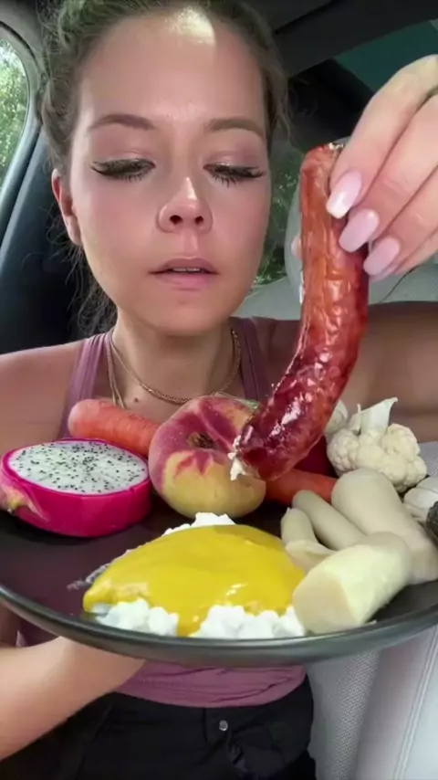 I’m like 100% sure I didn’t fully cook that sausage😂😭 @Tiffany Magee#mukbang#