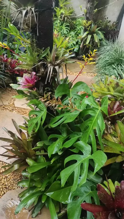 jardim integrado com lago ornamental