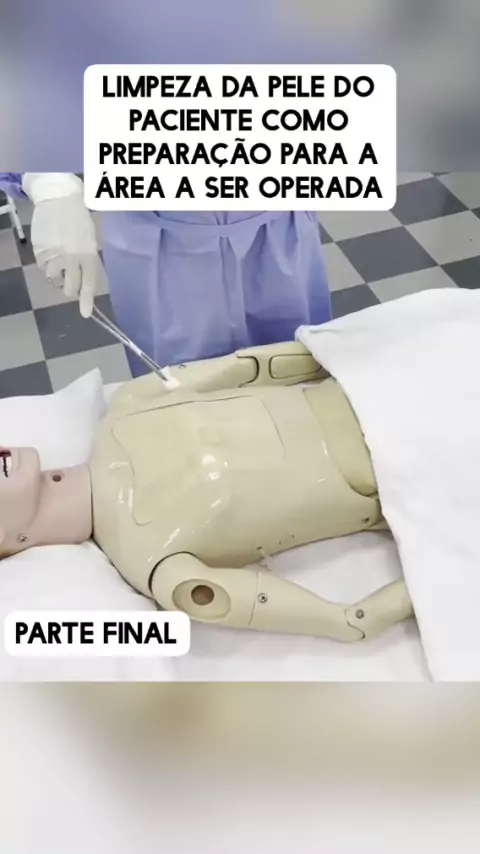 Limpeza da pele do paciente como preparação para a área a ser operada, parte final