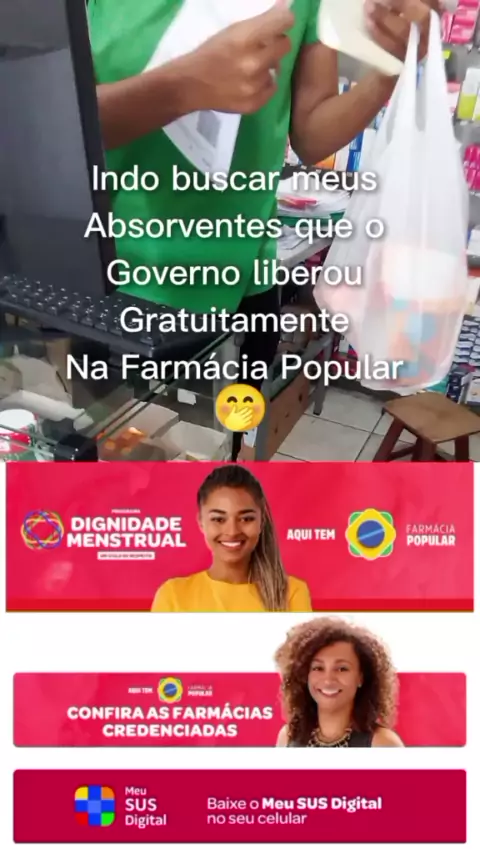 Buscando os Absorventes que o Governo liberou Grátis na Farmácia POPULAR - Dignidade Menstrual Assista os vídeos da Lilly Produccine 👈 no YouTub... #dignidademenstrual #governolula #farmáciapopular #BolsaFamilia #meususdigital