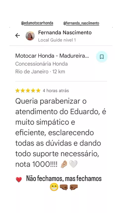 #GRATIDÃO 🙏🏾🏍️🔥🚀✅ Muito obrigado pelas palavras e pela confiança em nosso trabalho, Renan. Deus te abençoe. 🙏🏾 #VemSerHonda #MotocarHonda #Motocar #Parabens