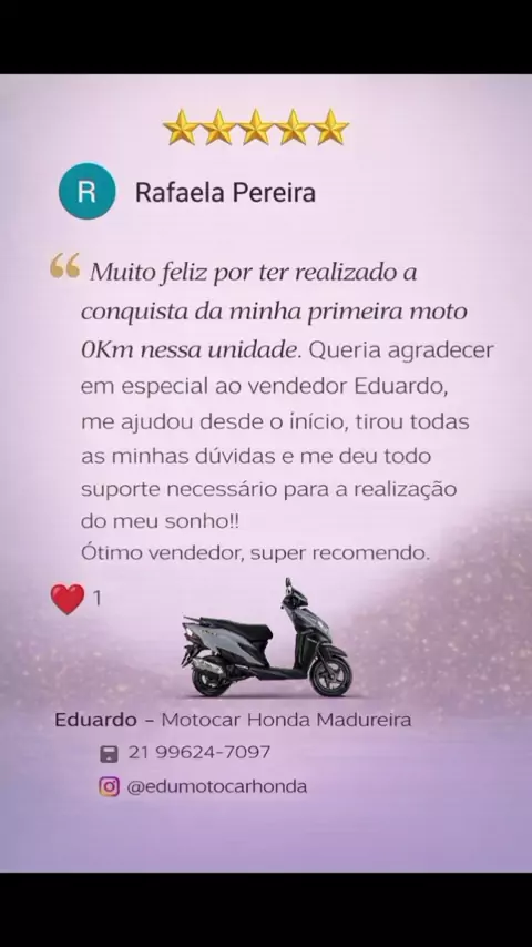 #Gratidao 🙏🏾🏍️✅ Muito obrigado pela confiança, Maira. Que Deus a abençoe hoje e sempre!!! 🙏🏾🚀🏍️ #MotocarMadureira #VemSerHonda #HondaMotos #motocar