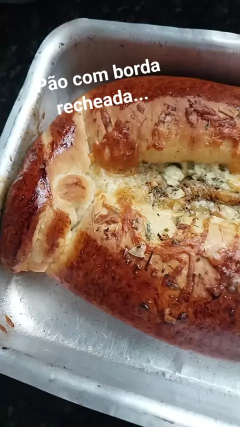 Pão com borda recheada com pasta de queijo ricota, alho e cebolinha. #Pizzas #salgados #KwaiChef #amocozinhar #Comida