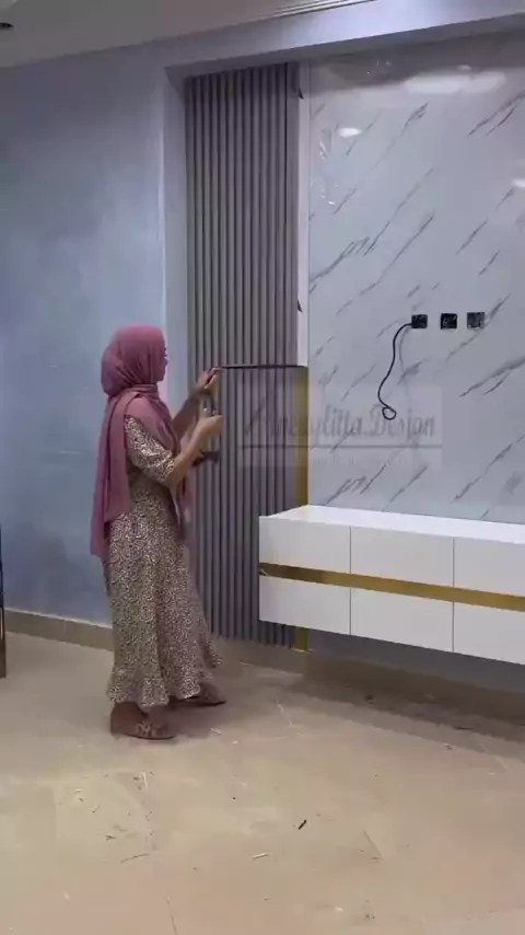 dekorasi ruang TV biar makin nyaman #desainrumahidaman #rumahminimalis #desainrumahmodern #wallpanel #listmirrorgold #RacunShopee