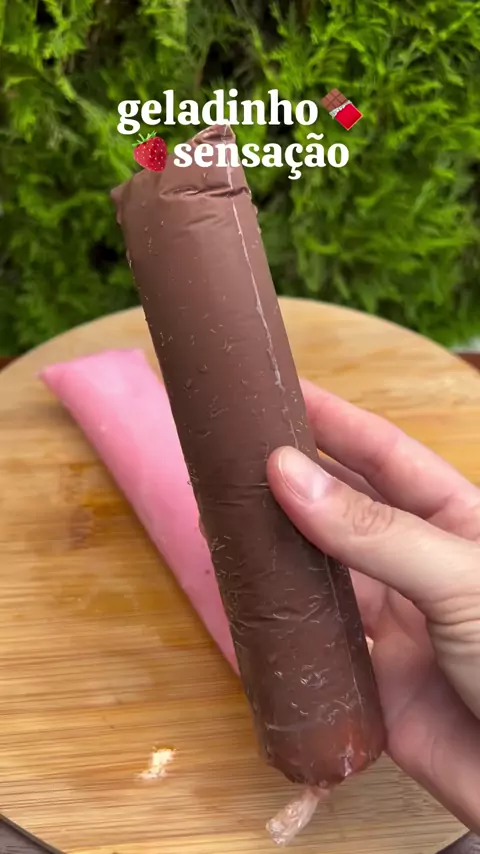 Geladinho Sensação com casquinha de chocolate 🍫🍓 Muito fácil e delicioso! Usei aqui o saquinho para geladinho tamanho 6cm x 24cm! Ingredientes 1 lata de leite condensado integral 2 caixinhas de creme de leite 17% gordura 200ml de leite integral 3 colheres (sopa) pó de suco de morango (tang, mid, kisuco, a marca que preferir) 300g de chocolate ao leite derretido (usei o fracionado) Modo de fazer no vídeo! Se tiver um funil para colocar o recheio no saquinho facilita . . ● 📽@comerbemjau
