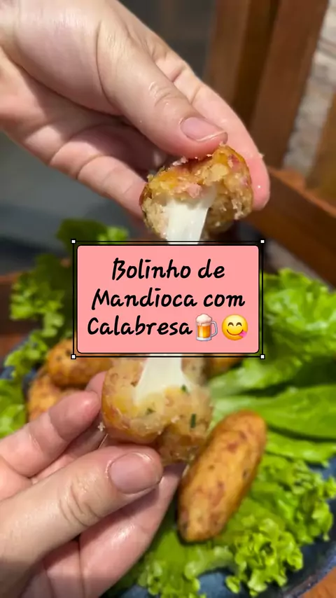 Bolinho de Mandioca com Calabresa 🥔🔥 Ingredientes: • 500g de mandioca cozida • 1 linguiça tipo calabresa @bouaoficial • 2 colheres (sopa) de amido de milho • Pimenta-do-reino a gosto • Sal a gosto • Cheiro-verde a gosto • Queijo mussarela @bouaoficial Modo de preparo: Amasse a mandioca ainda quente até ficar bem lisinha. Em seguida, misture a calabresa, o amido, o sal, a pimenta e o cheiro-verde até formar uma massa homogênea. Modele os bolinhos, e recheie . . ● 📽@pimenta.nela