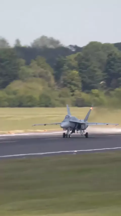 A demonstração do show aéreo da Força Aérea Canadense CF 18 "Bumblebee" RIAT, deixando o solo para abrir diretamente os fãs do # ARMY
