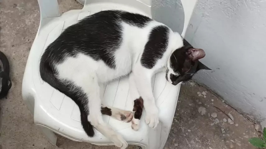 A usurpadora Com pena, os funcionários da Central de Flagrantes de Teresina e o comerciante que tem uma casa na frente, Raimundo, me dão uma cadeira para sentar porque eu fico no portão, das 7h às 21h de domingo a domingo, mas a gatinha, que está grávida, toma o assento e fica o dia inteiro dormindo.