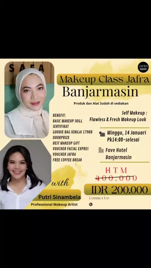 Buruan daftar kelasnya beb..mumpung masih ada kuota nya…cus hub kita yah🤗 #jafra #kelaskecantikan #makeupclass #