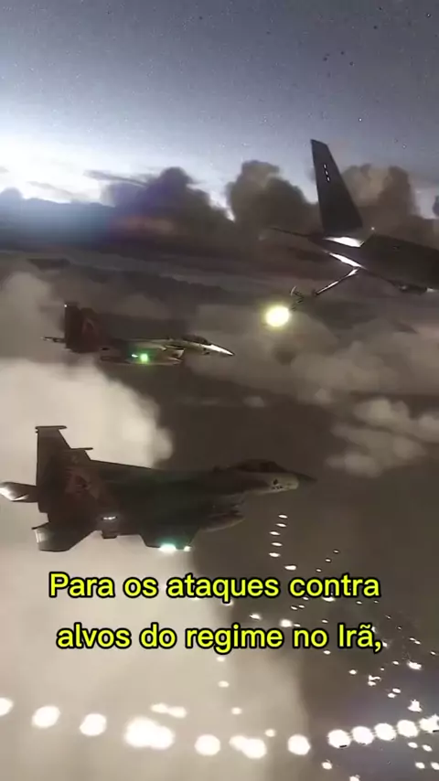 Para os ataques contra alvos do regime no Irã, há uma forte coordenação entre Israel e EUA, principalmente com relação à logística. Aqui vemos um reabastecedor aéreo americano abastecendo caças israelenses. A distância entre Israel e Teerã é de cerca de 1.500 km, e como os caças decolam muito carregados com bombas, precisam obrigatoriamente ser reabastecidos em voo.