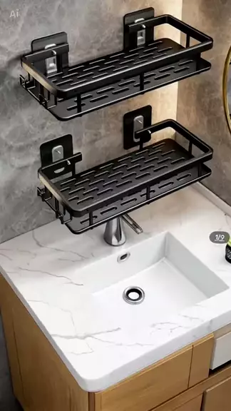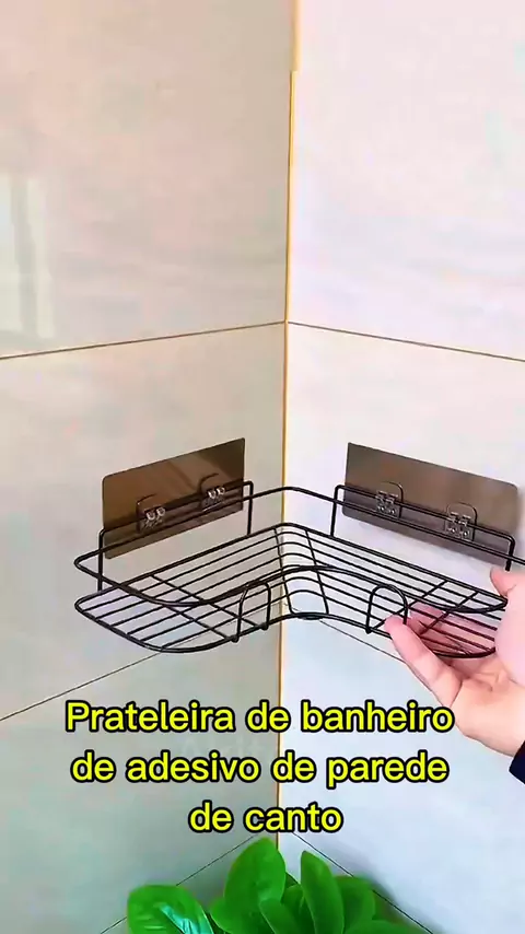 Prateleira de banheiro de adesivo de parede de canto #prateleira #multifuncional #Organização #banheiro #AkiTem