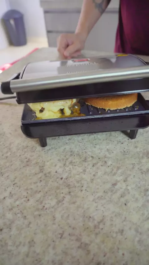 Hambúrguer queijudo na Sanduicheira Mondial 🍔🔥 Dá pra fazer um hambúrguer assim, com queijo derretendo e casquinha crocante… usando só a Sanduicheira Master Press da @mondialbr! Sem bagunça, sem chapa — só ligar e deixar ela fazer a mágica. Ingredientes: • 160g de carne moída • 1 pão brioche • Queijo fresco • Mussarela • Fatias de bacon • Fio de mel • Molho caseiro Me siga pra mais receitas práticas e gostosas com aquele toque caseiro de chef! #receitas #receitasimples #receita #rec