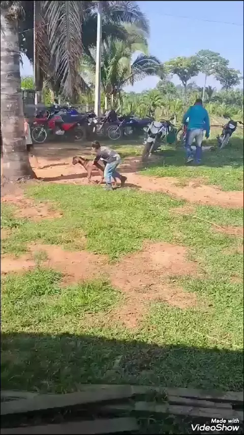 meu vaqueirinho já tá treinando a pega do boi mas por enquanto é o bode que sofre kkk.o professor ele tem em casa
