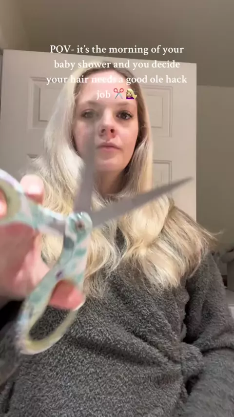 Good old kitchen scissor hack job 🤣💇🏼‍♀️ not a huge difference, but needed some texture and some of these dead ends off. 💗 ITS BABY SHOWER DAY!! Yay!!!#haircut#athomehaircut#diyhaircut#butterflycut#cuttingmyownhair###pppppppppppppppppppppp#babyshower#pregnant