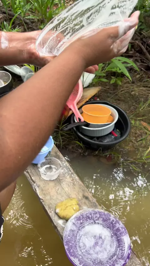 Lavando vasilha no igarapés #Vem2026NoKwai