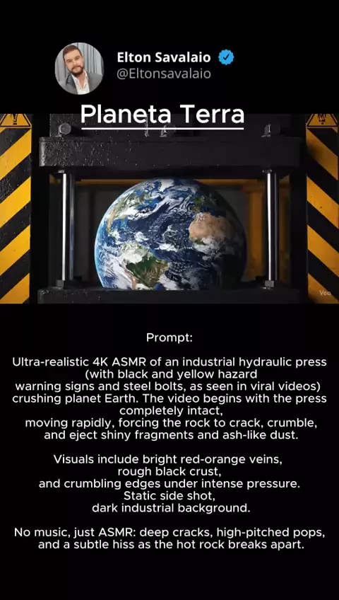 🌍✨ ASMR Cósmico: veja a prensa esmagar a Terra, a Lua e até o Sol! 😱🔊 Som hipnotizante, imagens incríveis e um toque de ficção cósmica. 📜 Prompt usado no vídeo #ASMR #Satisfying #PrensaHidráulica #PlanetaTerra #Lua
