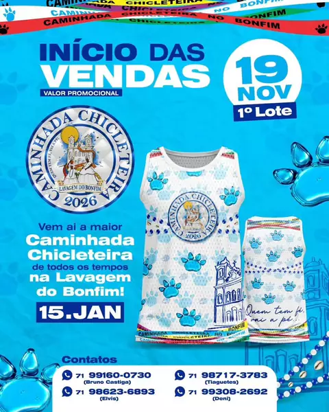 Se liga MALUQUETE, se liga CHICLETEIROS e BELLZEIROS, foi dada a largada viu?!! Agora é OFICIAL! ✅ Adquira já a sua CAMISA 👕o seu MANTO SAGRADO e venha curtir essa grande festa que é a LAVAGEM do Bonfim. Vc vai ficar de FORA? Então VUMBORA! Chame sua galera e venha na PAZ curtir o GroooVE CHICLETEIRO / BELLZEIRO com a gente.