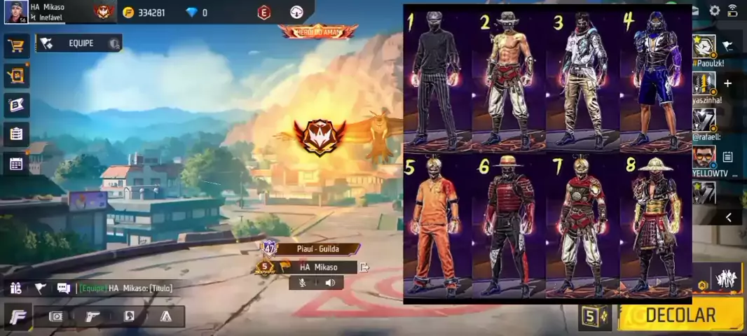 escolha sua iskin para ir 4v4 #frrefire_lover