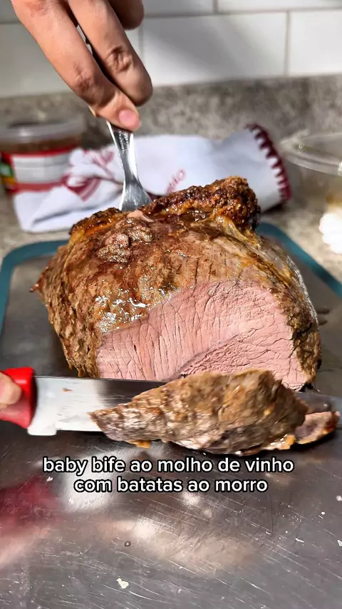 🥩✨ Baby Bife Ao Molho de Vinho: Receita Sofisticada e Fácil! Coração da alcatra (super macio) assado + batatas ao murro + molho de vinho com o caldo da carne. Perfeito! #BabyBife #AnoNovo #KwaiFood #ReceitaFácil