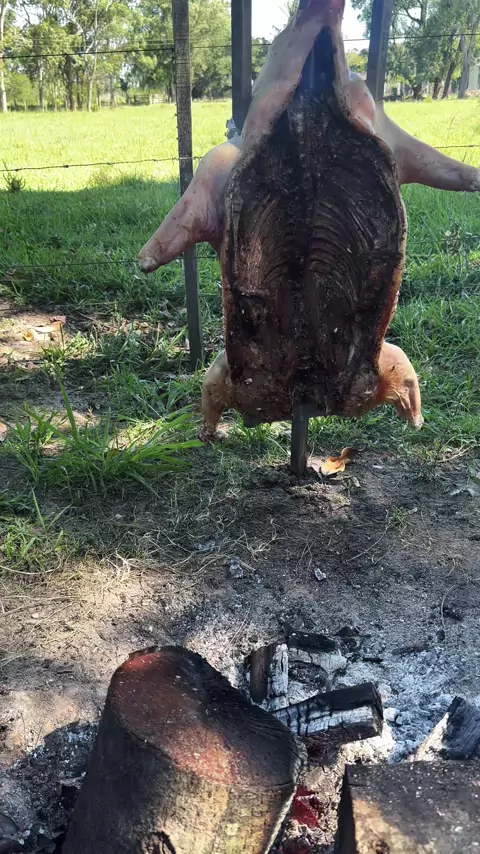 Tá ficando do jeito!! #churrasco #leitao #fogodechao