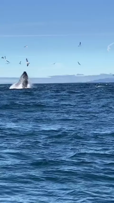 Baleias jubarte se alimentam de um enxame de milhões de anchovas ao largo da Califórnia. Tão insanamente legal!!! # woah # ocean # whales # jubarte