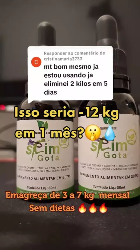 Descubra a revolução no emagrecimento com Slin Gotas! 🌟 Produto gringo com resultados comprovados: perca 10 kg em apenas 29 dias. Transforme seu corpo, recupere sua confiança. Experimente agora e alcance a melhor versão de você! 💪🔥