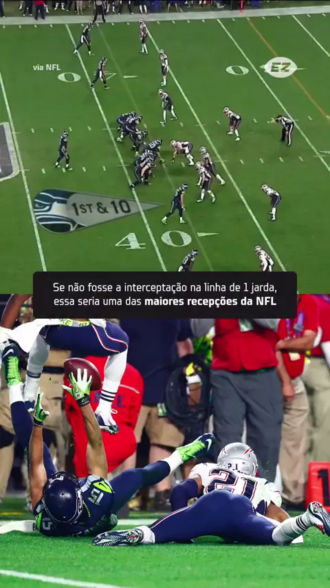 Com um minuto faltando e precisando da conversão, Jermaine Kearse fez uma das recepções mais improváveis da história, logo no Super Bowl, e colocou os Seahawks na beira da endzone. Como todos sabem, duas jogadas depois veio a fatídica interceptação de Malcolm Butler, que botou fim à temida Legion of Boom. Mas este lance poderia ter se tornado um dos mais lendários da história do Super Bowl. Siga o @endzone.br para conteúdos diários sobre a NFL! 🔥