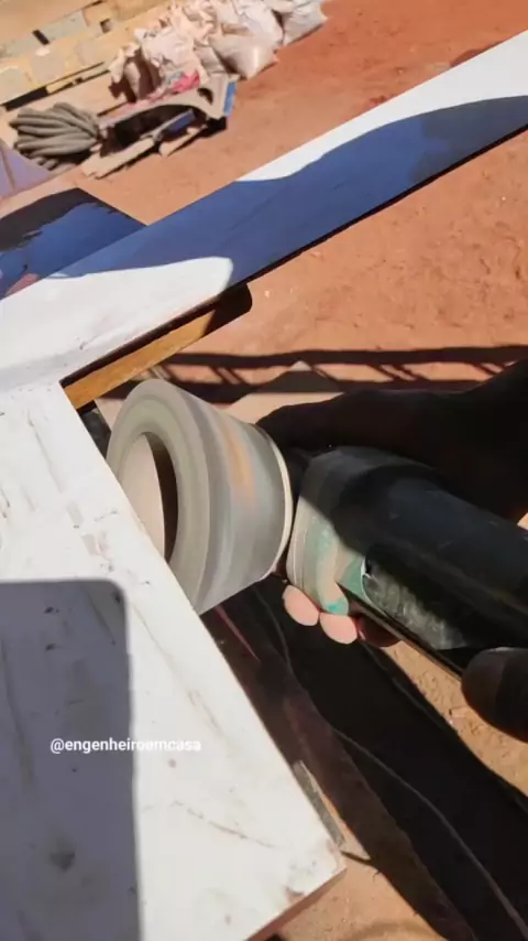 Acabamento de revestimento em meia esquadria. Para fazer um acabamento perfeito deve ter alguns cuidados como: 1- Usar a lixa para dar acabamento fino no revestimento 2- Destencionar as quinas com broca diamantada; 3- Dar acabamento nas quinas com massa plástica. Gostou, salve, curta e compartilhe #obra #construção #porcelanato #revestimentos