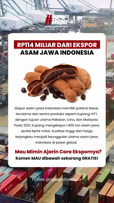 ๐Ÿ”ฅ 114 Miliar dari Ekspor Asam Jawa! Komoditas sederhana, tapi nilai pasarnya global ๐ŸŒ๐Ÿ’ฐ Dipakai untuk makanan, minuman, sampai industri di banyak negara. #ekspor #asamjawa #belajarekspor #ngobrolinekspor