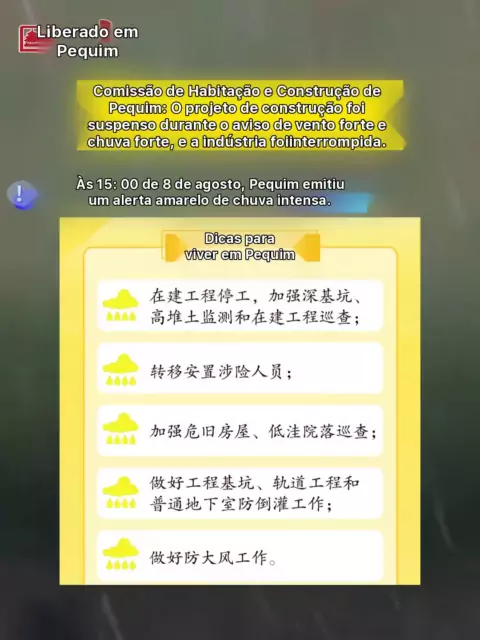 Comissão de Habitação e Construção de Pequim: O projeto de construção foi suspenso durante o aviso de vento forte e chuva forte, e a indústria foi interrompida.