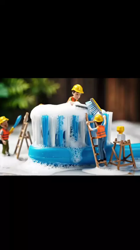"Trabalhadores em miniatura limpam uma escova gigante em um diorama cômico de ASMR." #ai #aiart #miniature
