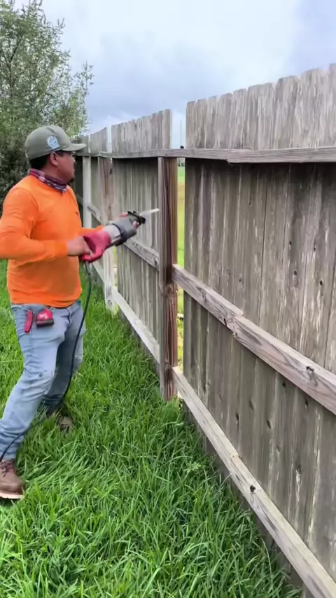 Removendo postes de vedação antigos usando este extrator de poste T. Fácil DIY economiza tempo e dinheiro # DIY # diyproject # constructionlife # construction # fencebuild # hurricaneberyl # stormdamage