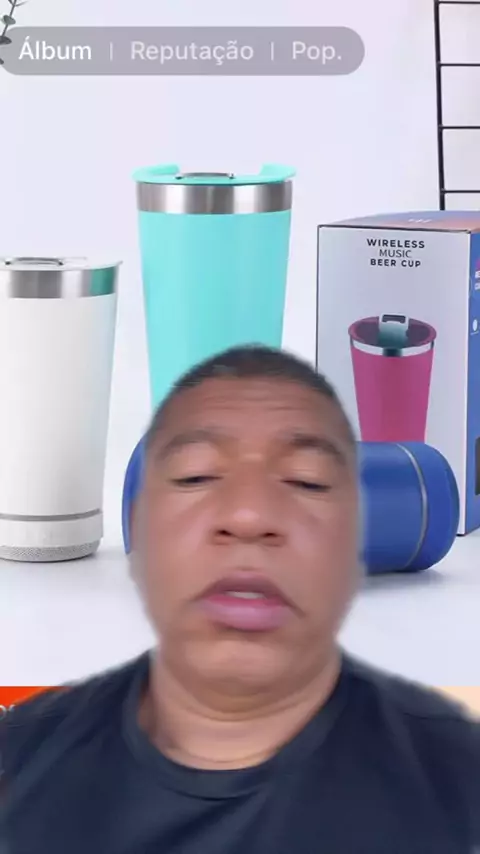 Copo térmico inox com tampa abridor e caixa de som com bluetooth Led 4