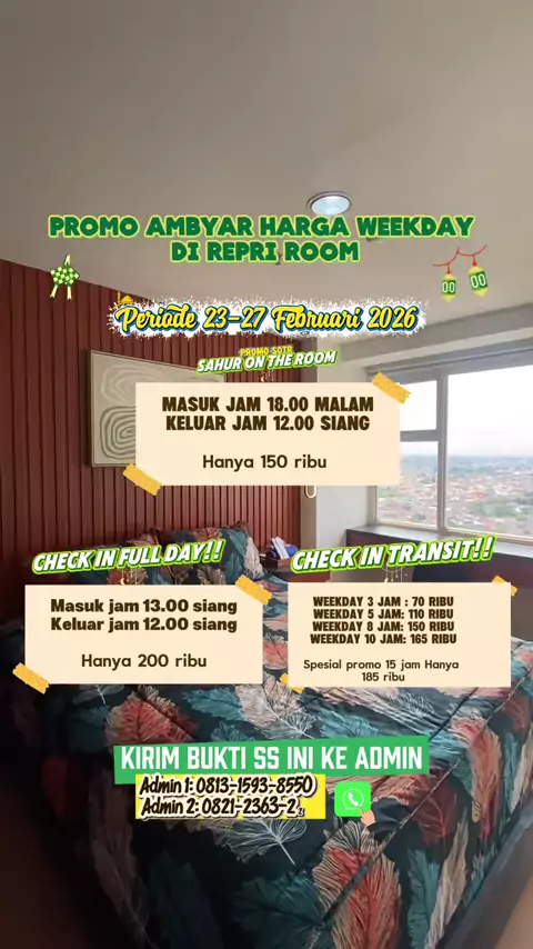 PROMO AMBYAR HARGA WEEKEND RAMADHAN DI REPRI ✨🫶🏻 Ready everyday apartment Margonda Residence 3&5 Sewa apartment depok Bookinh now Admin 1: 0813-1593-8550 Admin 2: 0821-2363-2257( Chat only) #apartment #sewaapartemenharian #margondaresidence #rayapenuhrasa #ramadhan