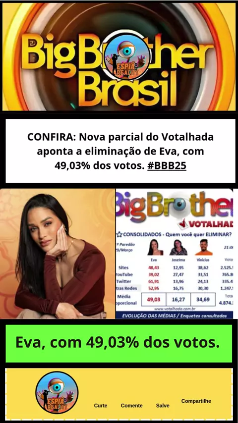 Eva está sendo eliminada com 49,03 %#bbb25 #viral #globo#bbb#viral
