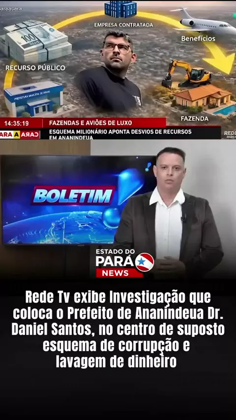 Investigação exibida pela RedeTV! cita prefeito de Ananindeua em suposto esquema de corrupção Uma investigação exibida pela RedeTV! colocou o prefeito de Ananindeua, Dr. Daniel Santos, no centro de um suposto esquema milionário de corrupção e lavagem de dinheiro. A apuração aponta indícios de desvio de recursos públicos que teriam sido utilizados na aquisição de bens de alto padrão, como fazendas e aviões de luxo. #Ananindeua