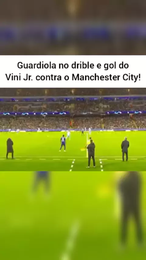Imagens que não precisam de legenda! Essa foi a reação do Guardiola no drible e gol do Vini Jr. contra o Manchester City! #esporte #futebol #gol #champions #realmadri