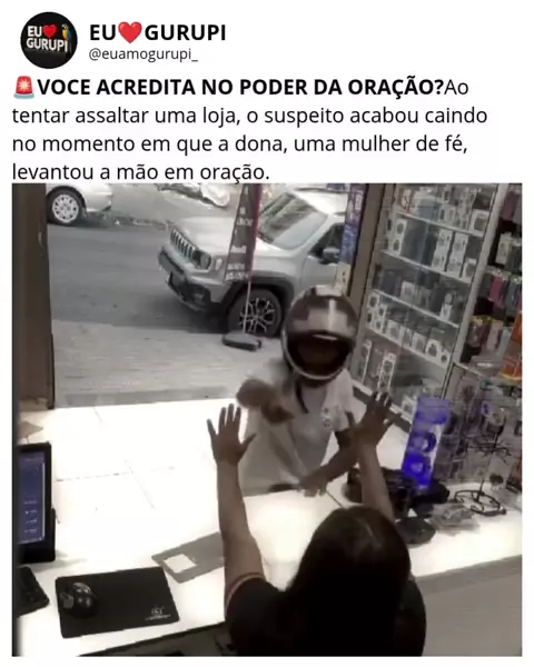#Repost @euamogurupi_ #repost @euamogurupi_ Ao tentar assaltar uma loja, o suspeito acabou caindo no momento em que a dona, uma mulher de fé, levantou a mão em oração.