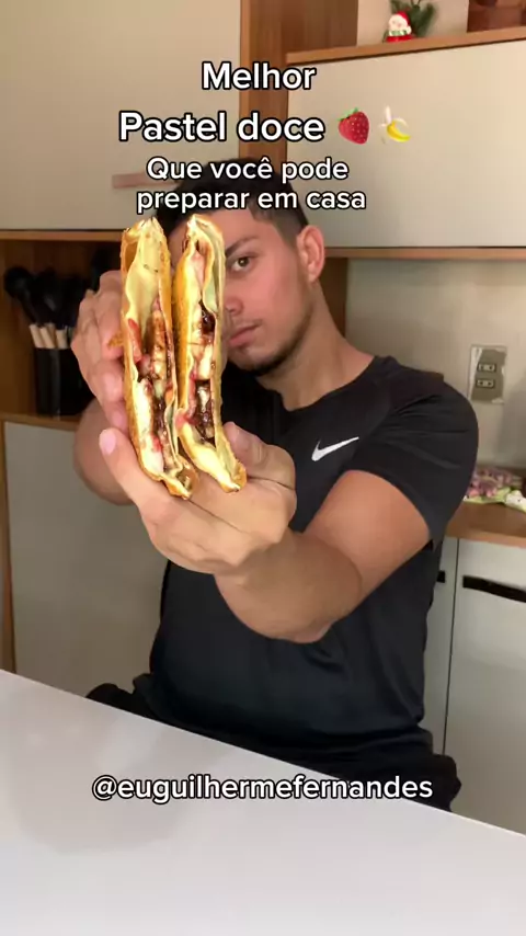 PASTEL DOCE 🍓🍌 . . SIGA: @euguilhermefernandes . . ⚠️(INGREDIENTES)⚠️ -50G de morango -1 banana -10ML Leite condensado -50G de nutella . . . #pastel #receitas #morango #ASMRFOOD #viral