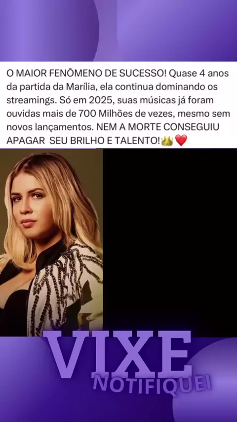O MAIOR FENÔMENO! mesmo três anos após sua morte, Marília Mendonça continua sendo um dos nomes mais ouvidos do país. Em 2025, suas músicas já somam mais de 700 milhões de reproduções nos streaming -- um marco que reforça o legado da nossa eterna Rainha da Sofrência.🥹👑