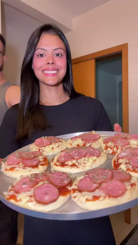 Mini pizza 🍕 1 sachê de fermento biológico seco 1 colher de sopa de açúcar 1 colher de chá de sal 300 ml de água morna 2 colheres de sopa de azeite ou óleo 500g de farinha de trigo Para o recheio usei queijo muçarela, calabresa, molho de tomate, cebola e orégano. Tudo a gosto 🥰 #pizza