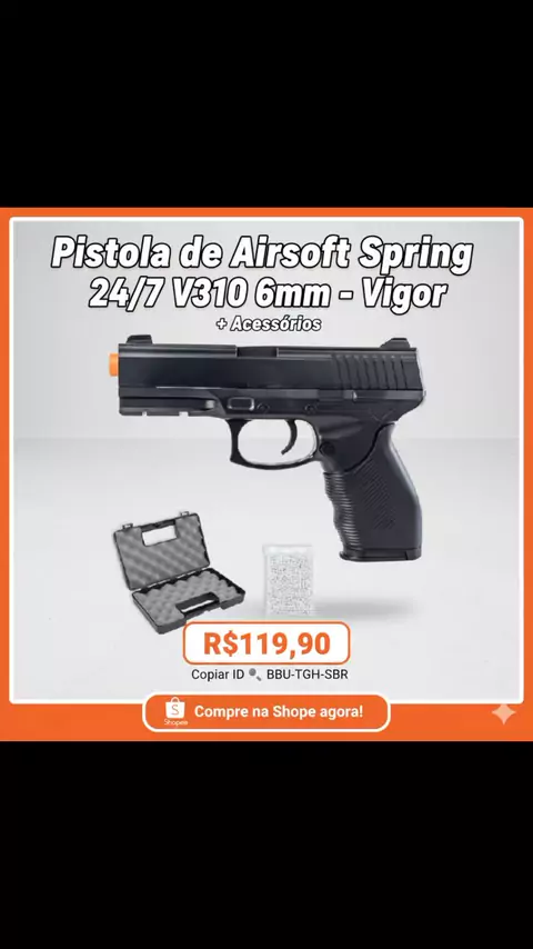 Pistola de Airsoft Spring 24/7 V310 6mm – Vigor + Acessórios por R$119,90 Compre na Shopee agora! https://s.shopee.com.br/qbjdkO7bx